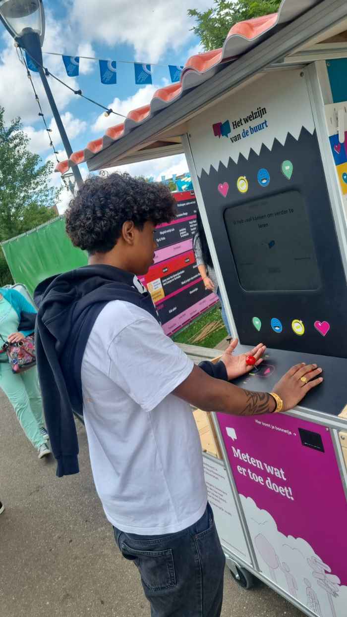 Young people were actively involved as well. The team created a special coffee cart to answer the survey questions in a fun and playful way. The cart was placed at different spots and events in the neighbourhood. Together with Laurence, kids also made their own ‘dashboard’. This helped them think about their area and wellbeing in an enjoyable way – and it also showed what young residents find important.