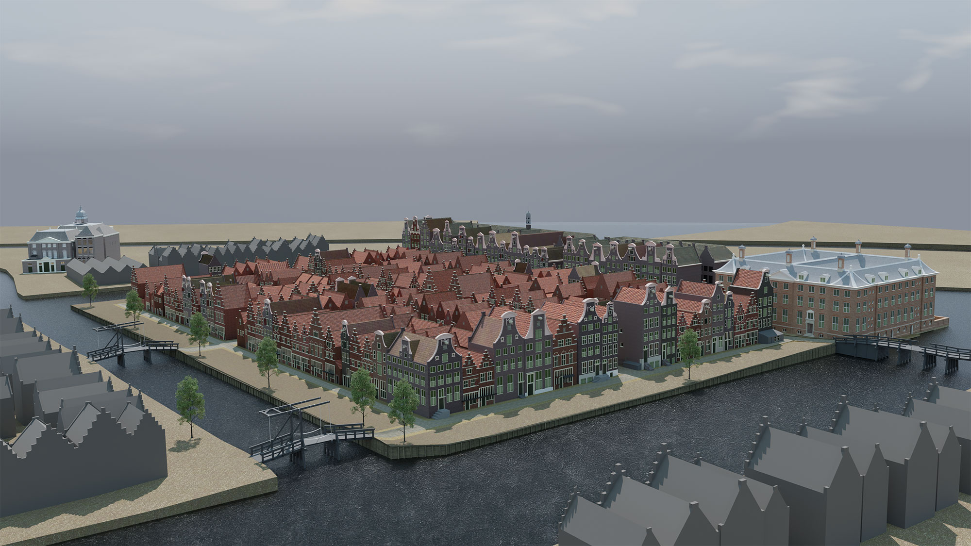 Vlooienburg in 1680 (reconstructie door het 4D Research Lab)