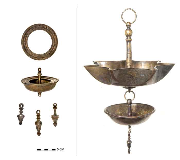 Onderdelen van sjabbatlampen die werden opgegraven uit de beerputten