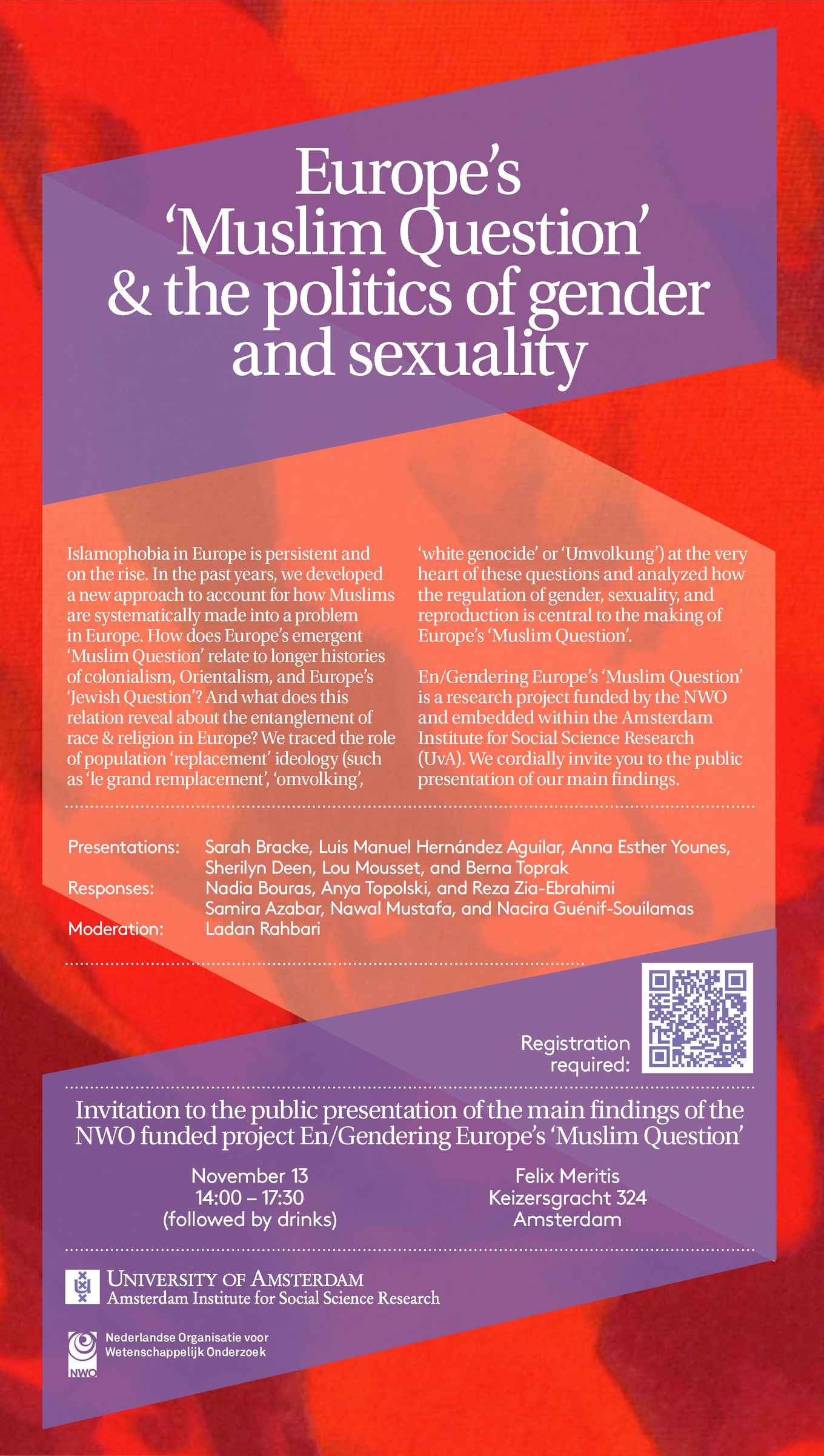 En/Gendering Europe’s ‘Muslim Question’ is a research project funded by the Dutch Research Council (NWO) and embedded within the Amsterdam Institute for Social Science Research (AISSR) at the University of Amsterdam.